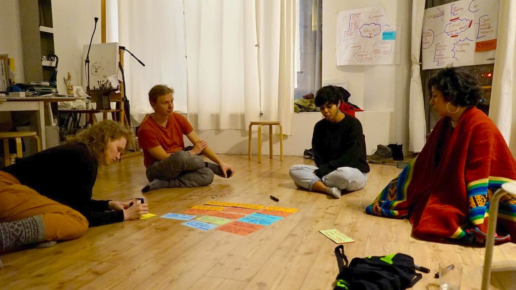 A central issue for our group is exhaustion and burnout within both theatre/dance/performance training and political activist spaces. These spaces are part of a larger social structure where productivity is valued over health. We are often forced to individualize our ways of addressing burnout, chronic exhaustion and sickness, through “self-care” or pathologizing solutions. Yet this is only a temporary solution to the larger issue of over-productivity.